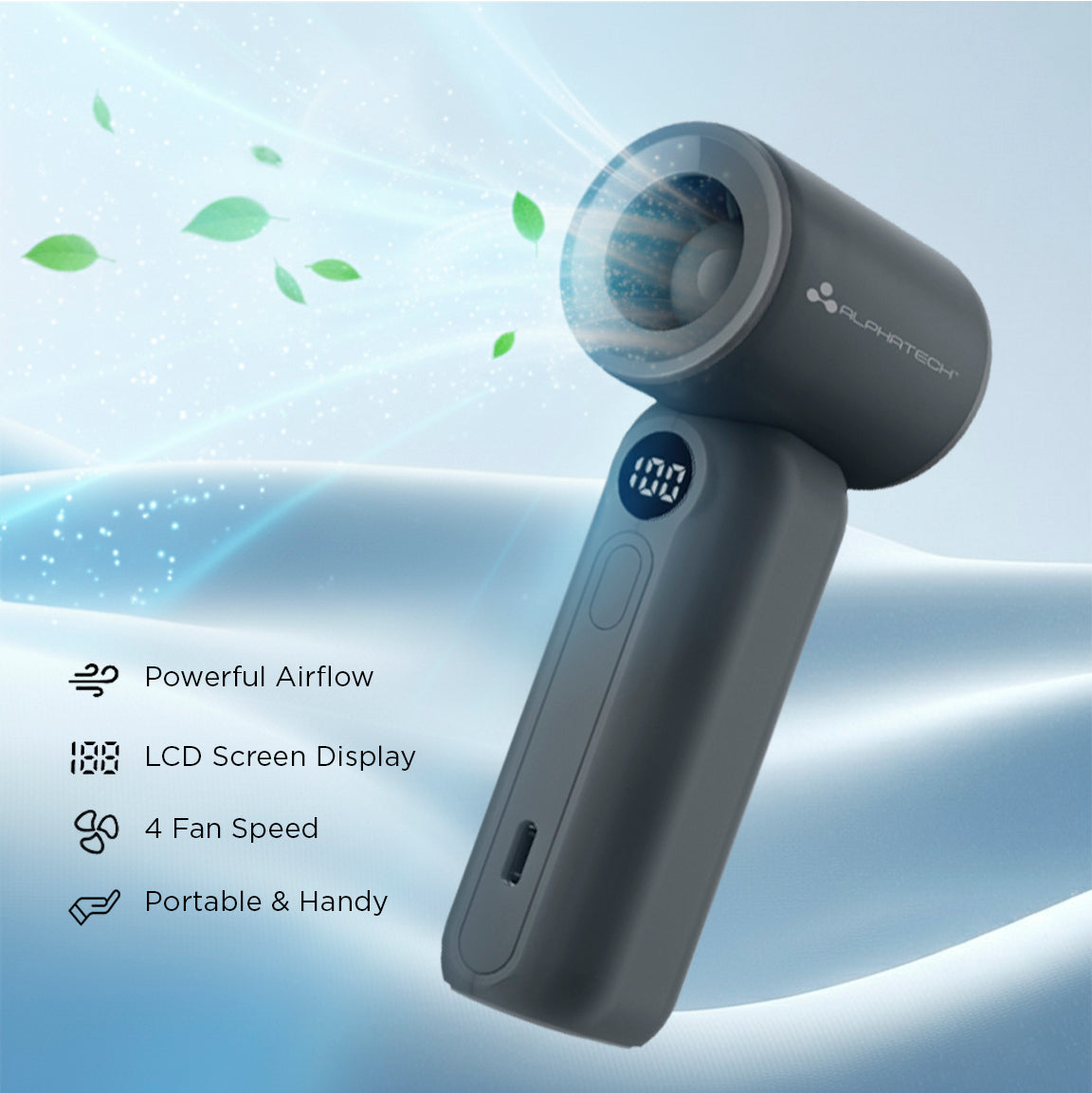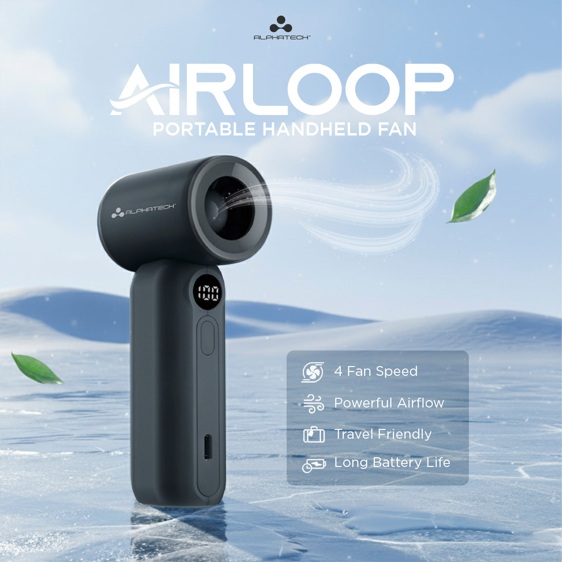 Introducing the Airloop Portable Handheld Fan, a compact yet powerful cooling device designed to keep you refreshed wherever you go.