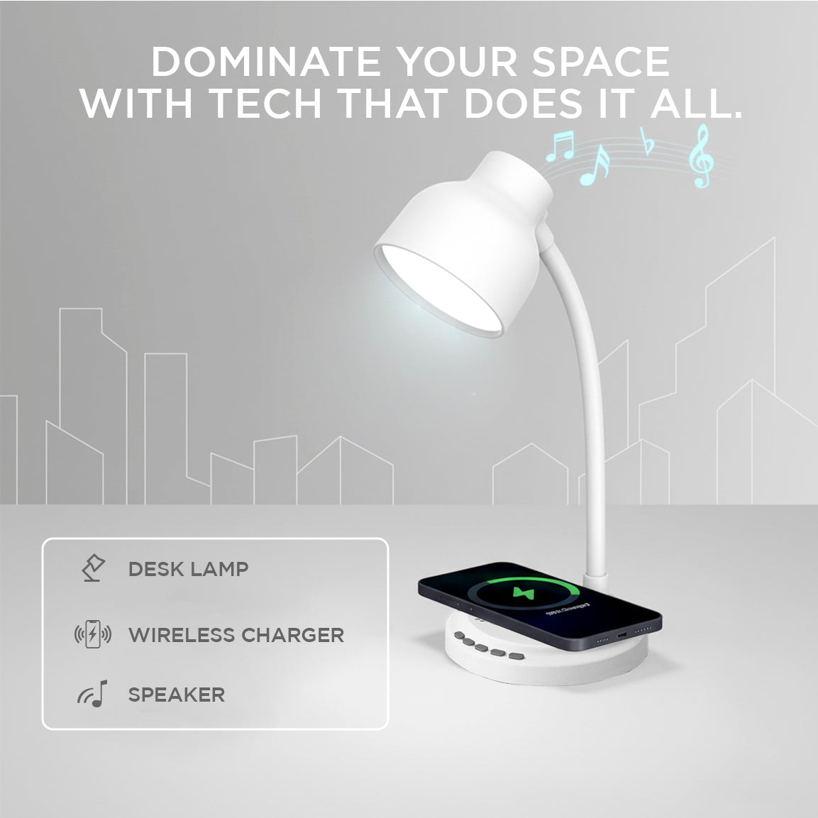 Elevate your workspace with Nooklight, the all-in-one desk companion that blends refined lighting, immersive sound, and fast wireless charging.